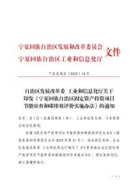 【31号令:宁夏】宁夏自治区发展改革委 工业和信息化厅关于印发《宁夏回族自治区固定资产投资项目节能审查和碳排放评价实施办法》的通知
