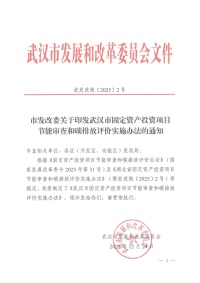 武汉市发改委关于印发武汉市固定资产投资项目节能审查和碳排放评价实施办法的通知(武发改规〔2025〕2号)
