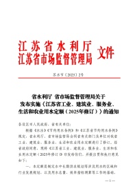 苏水节202502省水利厅+省市场监督管理局关于发布实施《江苏省工业、建筑业、服务业、生活和农业用水定额(2025年)》的通知(无章)