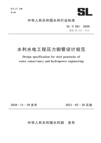 水利 行业标准《水利水电工程压力钢管设计规范》SL T 281-2020 代替 SL T 281-2003