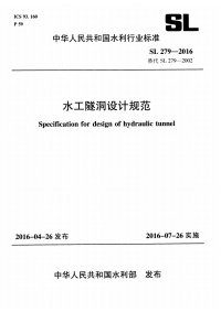 水利行业标准《水工隧洞设计规范》SL 279-2016 代替 SL 279-2002