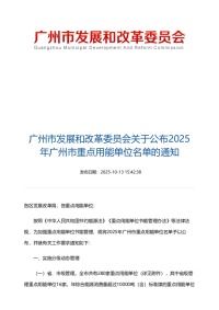 【广州市280家重点用能单位名单】广州市发展和改革委员会关于公布2025年广州市重点用能单位名单的通知(2025-10-13)