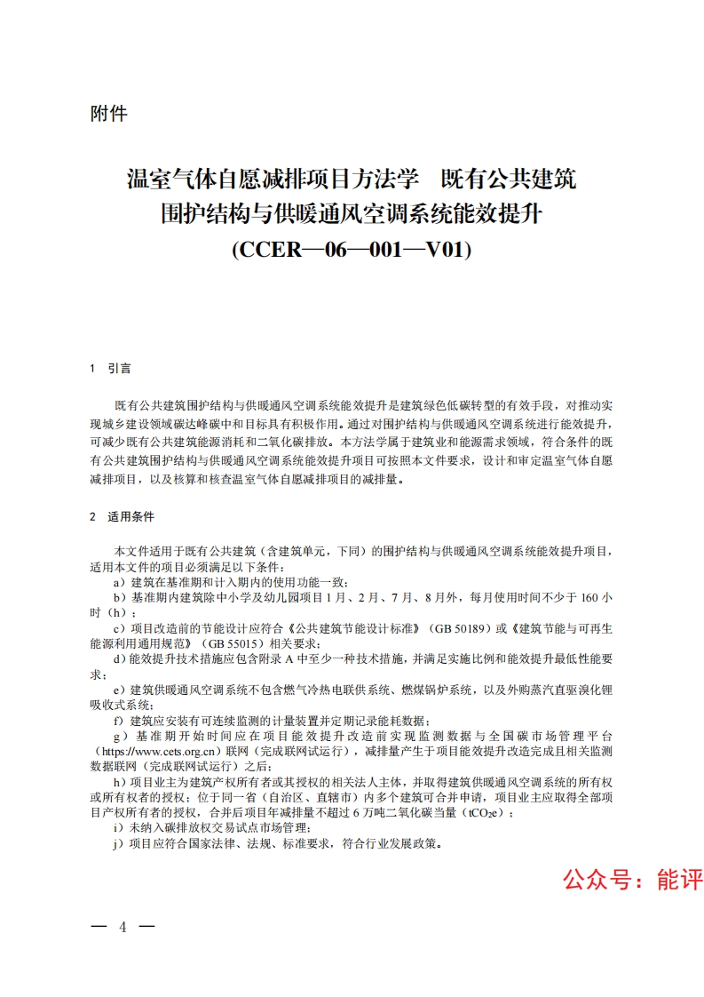 首页碳达峰碳中和(双碳目标)CCER方法学《温室气体自愿减排项目方法学 既有公共建筑围护结构与供暖通风空调系统能效提升(CCER-06-001-V01)》