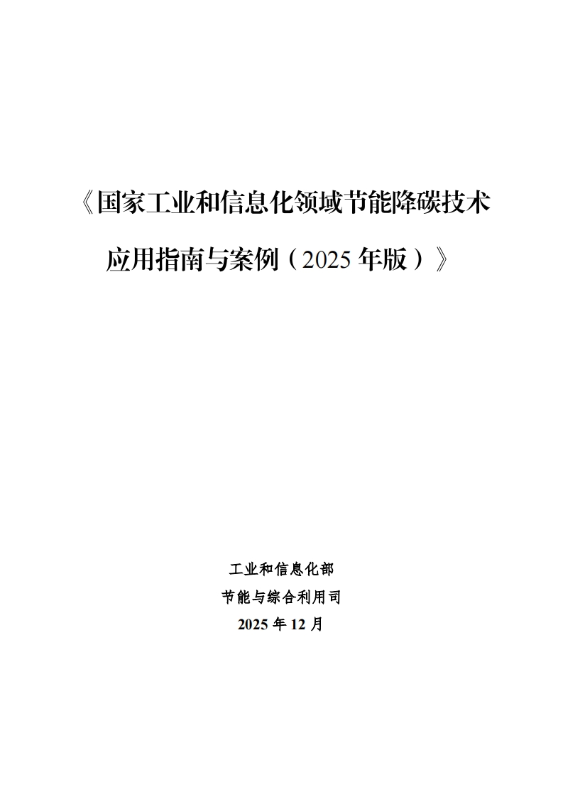 国家工业和信息化领域节能降碳技术应用指南与案例(2025年版)
