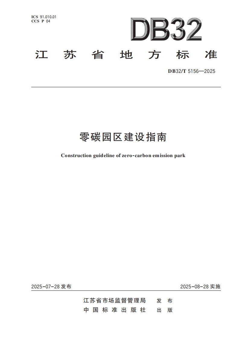 (江苏地方标准)《零碳园区建设指南》(DB32/T 5156-2025)