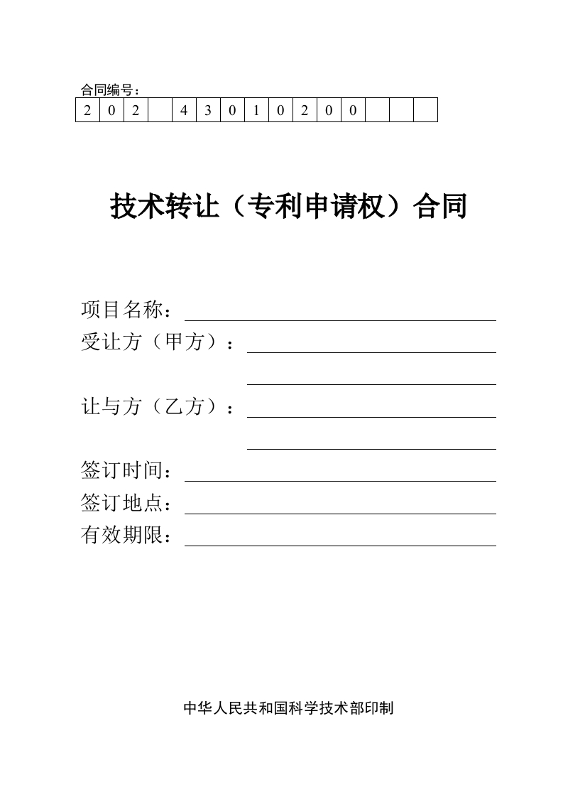 技术合同模版(国家科技部)——技术转让(专利申请权)合同