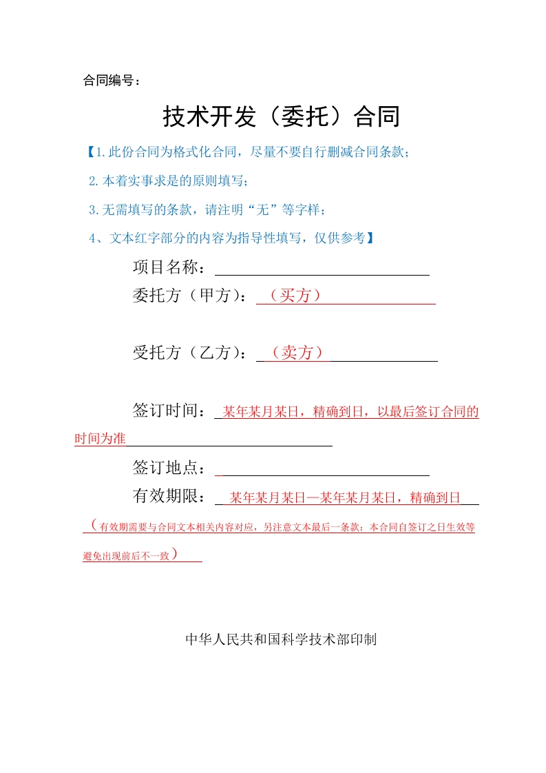 技术合同模版(国家科技部)——技术开发(委托)合同填写指导