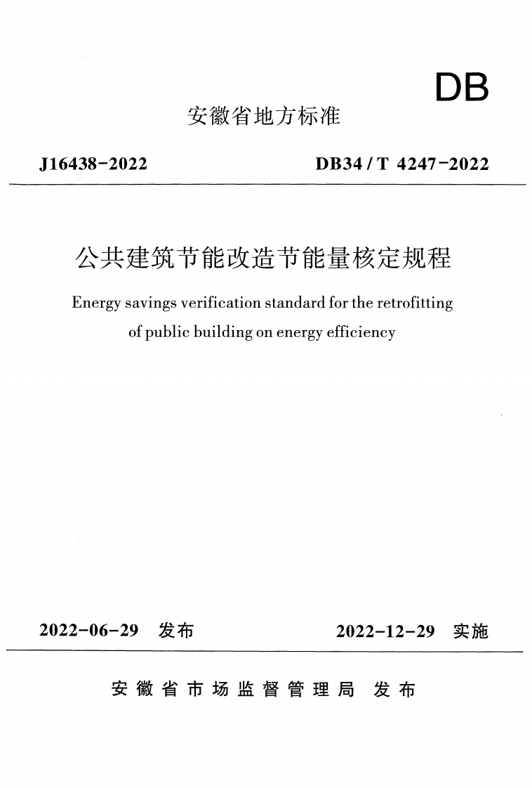 [高清PDF]安徽地方标准《公共建筑节能改造节能量核定规程》(DB34T 4247-2022)