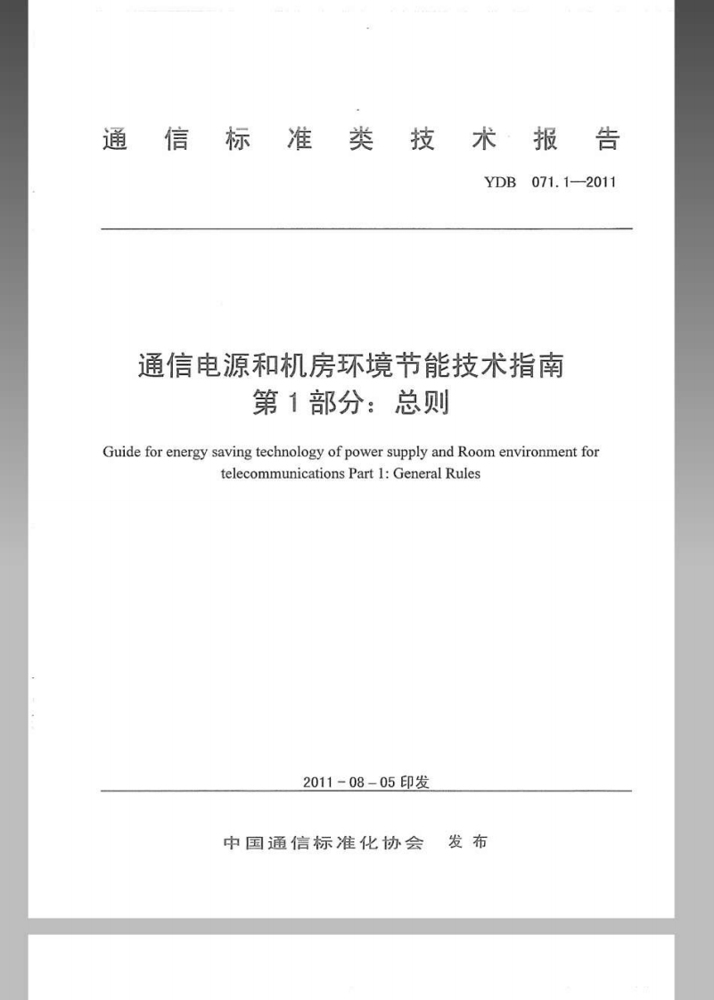 通信电源和机房环境节能技术指南 第1部分:总则(YDB 071.1-2011 )