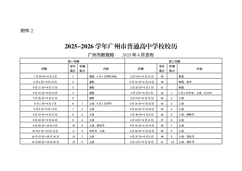 【广州校历】2025-2026学年广州市普通高中学校校历