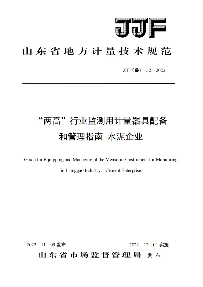 山东地方标准JJF(鲁)152-2022-“两高”行业监测用计量器具配备和管理指南 水泥企业