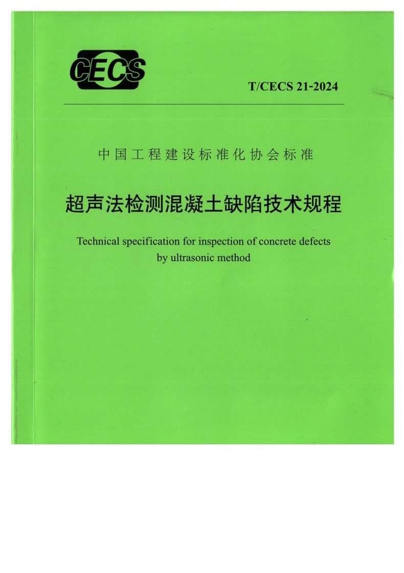 团体标准《超声法检测混凝土缺陷技术规程》T-CECS 21-2024