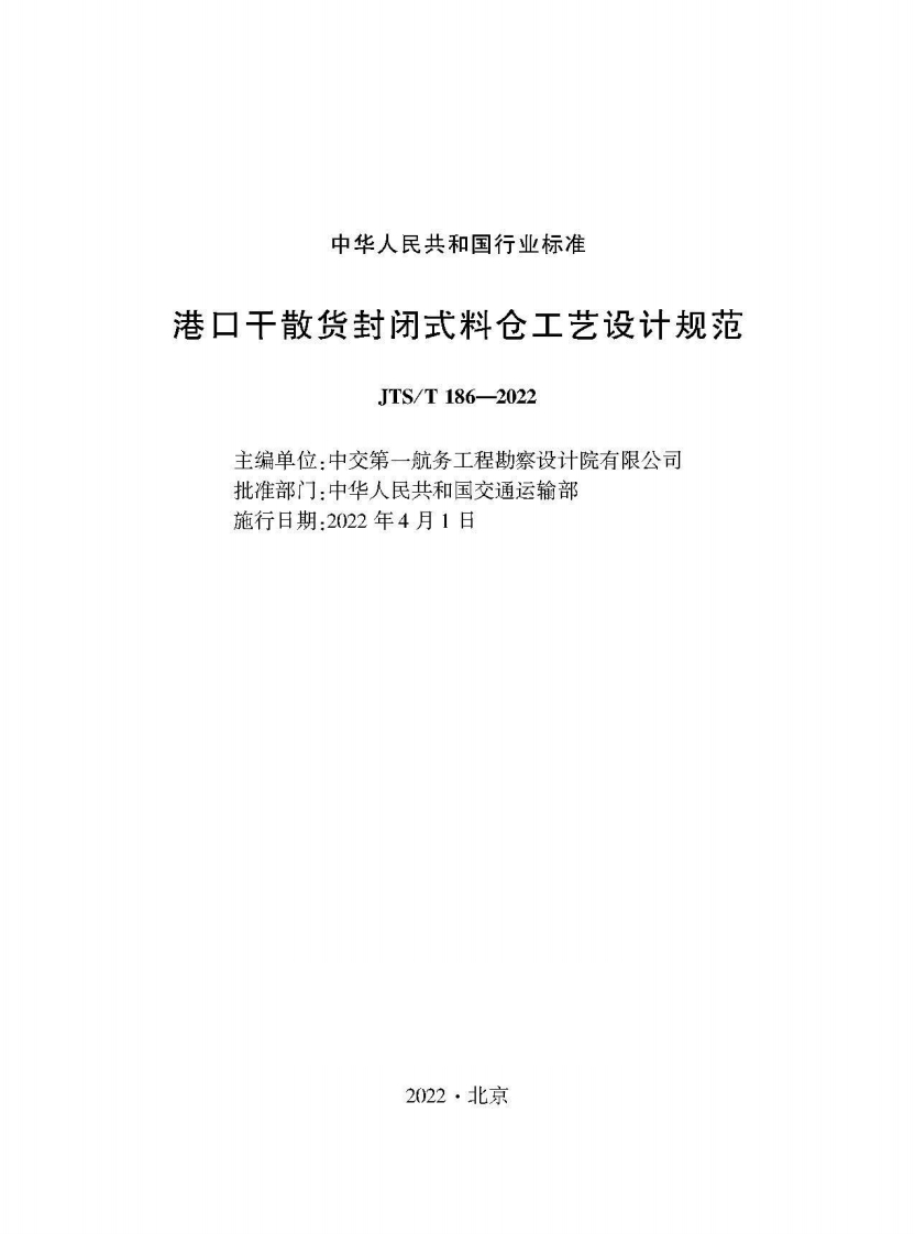行业标准《港口干散货封闭式料仓工艺设计规范》JTST 186-2022