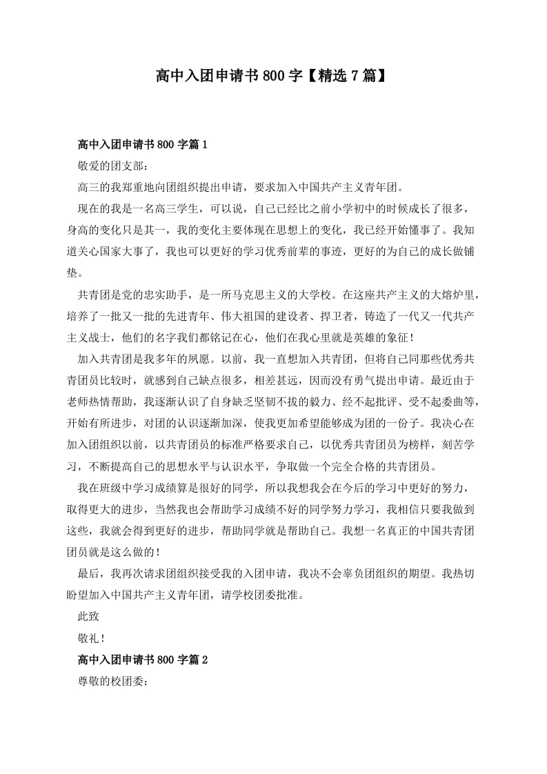 首页教育资源教育资源高中入团申请书800字【精选7篇】