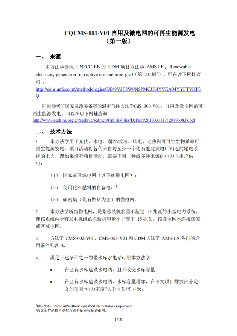 重庆市“碳惠通”方法学(第1批). CQCMS-001-V01 自用及微电网的可再生能源发电方法学