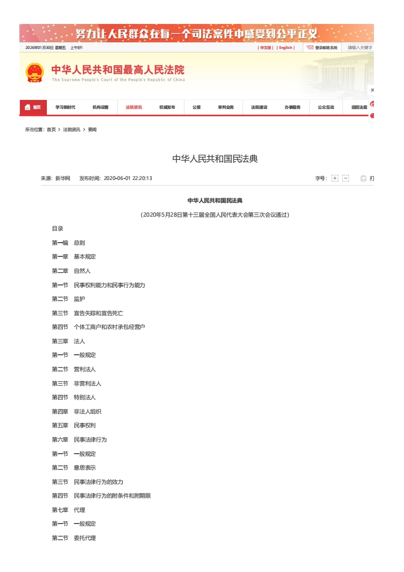 首页国家标准/地方标准法律法规《中华人民共和国民法典》 中华人民共和国最高人民法院