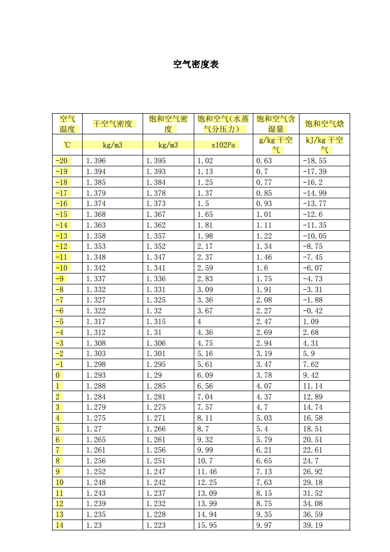 首页技术资料专业书籍常用的空气密度表(-20-100度)