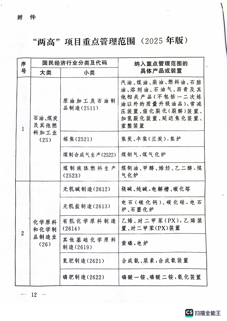 首页国家标准/地方标准政策文件两高项目重点管理范围(2025年版)