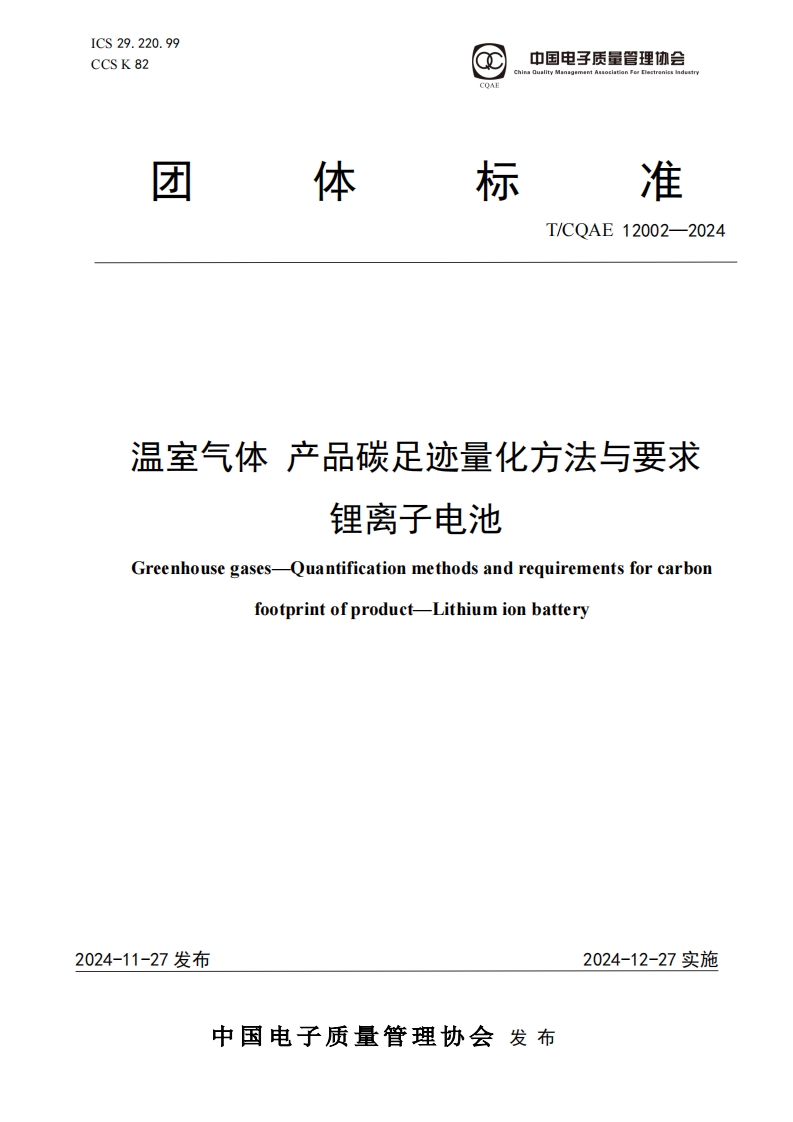 《温室气体 产品碳足迹量化方法与要求 锂离子电池》TCQAE120022024
