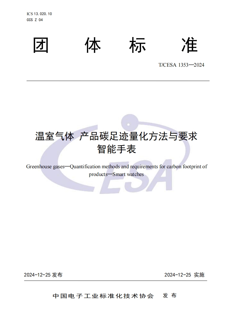 《温室气体 产品碳足迹量化方法与要求 智能手表》TCESA 1353-2024