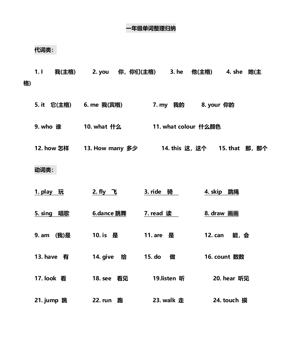 一年级英语单词