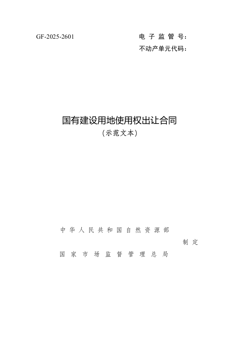 《国有建设用地使用权出让合同 (示范文本)》(GF-2025-2601)