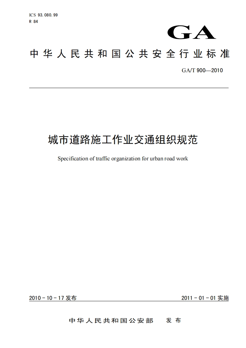 城市道路施工作业交通组织规范(GAT 900-2010)