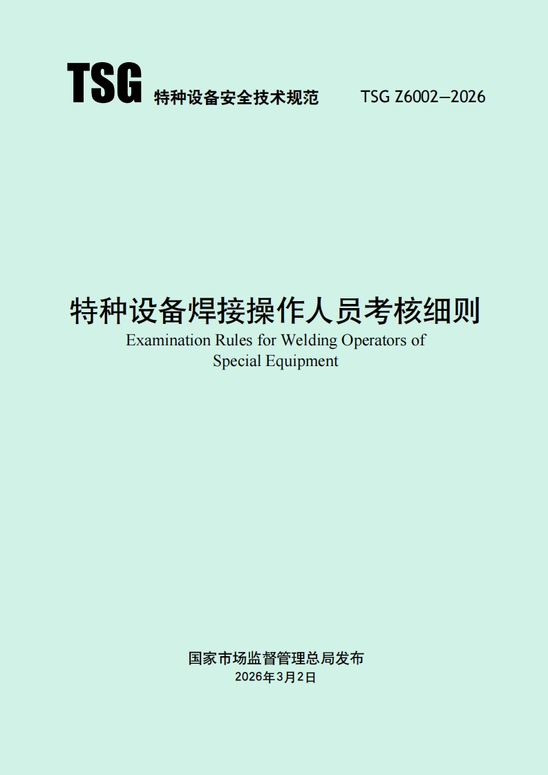 《特种设备焊接操作人员考核细则》(TSG Z6002-2026)